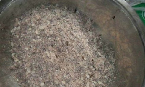 酒糟和馒头一块拌匀。。。