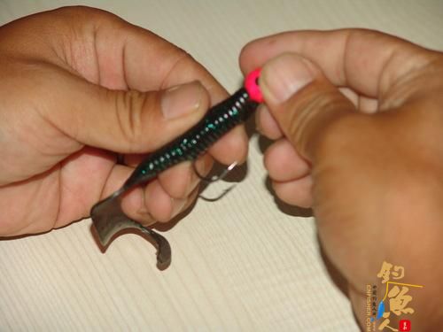 这是最后组装完成的状态,钩子所在的位置不会影响软饵尾部的摆动,有鱼攻击时也会有效地刺入。