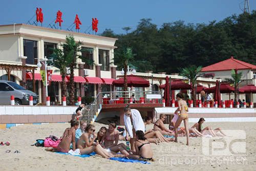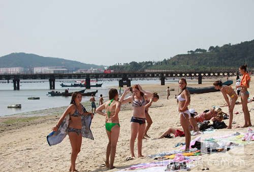 由大连市政府主办的2011大连长山群岛国际钓鱼节日前正式开幕,这标志着大连长海县由渔业为主的传统资源型经济向旅游业为核心的现代服务型经济转型迈出了关键一步。在长海县大长山岛海滩,来自俄罗斯的美少女在海滩嬉戏,享受日光浴。