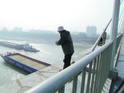 前天上午,拍客“太湖水”在月湖桥中央,看见有人翻过桥面的安全护栏,站在大桥边缘上往汉江里钓鱼,桥上风刮得呼呼响,真为垂钓者捏把汗。可是在护栏上,“严禁翻越”的警示牌赫然在目。