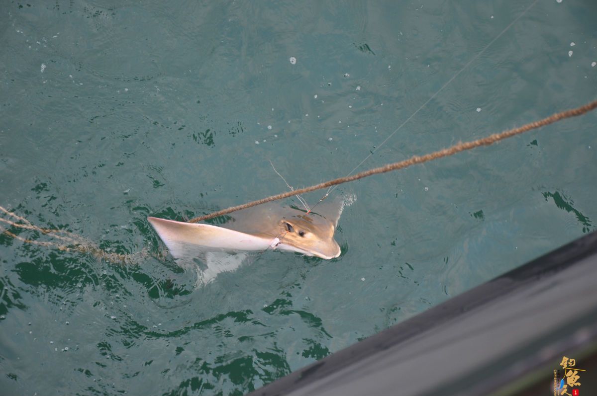溜鱼完,它力竭了,我们却没有办法把它弄上五米高的船舷