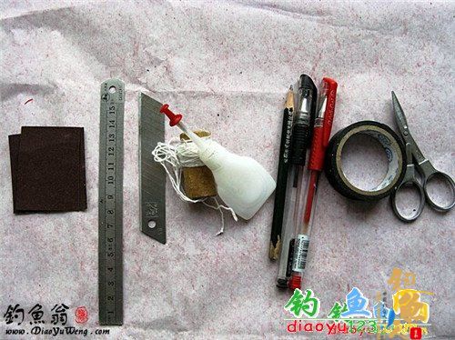 首先是工具的准备:壁纸刀、棉线、剪刀、砂纸(粗细都要有)、笔、尺子、胶带、502胶水等