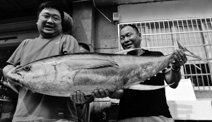 钓到这条超大金枪鱼的是我市的3名海钓爱好者:林柄鑫、郑旭武、余建成。据了解,这是目前国内放流手钓到的最大的金枪鱼。此次,他们3人与另外9名外地海钓爱好者一起于8月6日从深圳乘船出发,在南海油田一带进行海钓。在9日凌晨2点,他们钓到了这条超大金枪鱼。由于这条金枪鱼实在太重,他们3人耗费了一个多小时才将它成功钓起。据业内人士估算,该超大金枪鱼的市价在一万元以上。