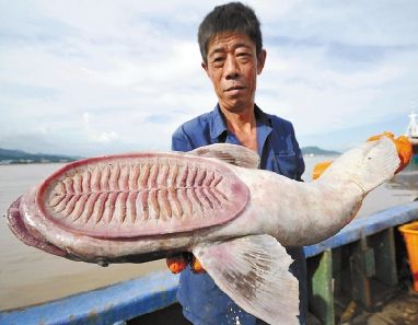 据渔业专家鉴定,这是一条吸盘鱼,因其第一背鳍变态形成吸盘得名。该鱼常以吸盘附于鲨鱼或其他大鱼或舰船底部,让这些大家伙带着它周游世界,故有“最懒的海洋鱼类”和“免费旅行家”之称。
