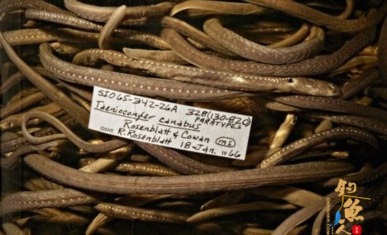 斯克里普斯海洋研究所的动物标本馆并不是一个简单的保存库,研究者们一直都在对这些标本进行鉴定和研究,寻找新的物种。上图这种鳗鱼于1961年在加利福尼亚州巴哈捕获,多年之后,科学家发现这是一个新的物种。