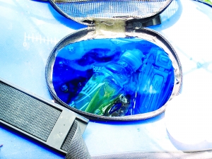 蔡师傅介绍说,这两只饮料瓶子原来是装了冰块的,放在水里是为了给水降温。“鱼也怕热啊,夏天温度高,鱼在水里容易缺氧,如果不降温的话,回去的时候就一条活的都没有了。”而用饮料瓶装冰块给鱼降温的办法,就是蔡师傅自己摸索出来的。“除此之外还可以使用增氧棒,渔具店就有的卖。”蔡师傅说,增氧棒也是一个防止渔获提前“牺牲”的好方法。“有些人也使用网兜状的鱼护,把钓上来鱼还放回原来的水里。”