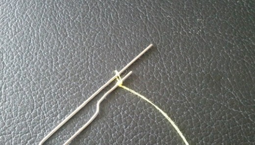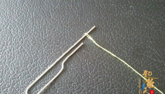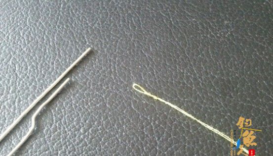 第9步:捏住打结器的手将结往上推,脱离短针,在长针上用力收紧。从长针退下,完成。