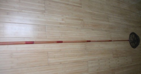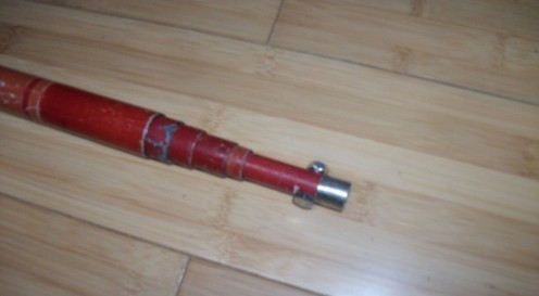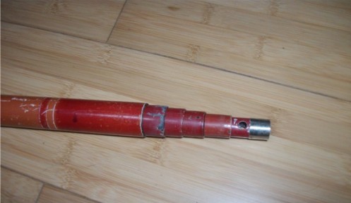 第三步:用一节合适内径的铁管,套在竿体最前端,加固竿体跟抄网头的链接位置: