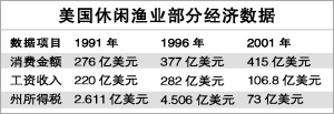 休闲钓鱼作为美国人最喜爱的一项户外娱乐,喜爱程度甚至超过了高尔夫球和网球等运动。据统计,在美国参与高尔夫和网球的运动人数分别为2310万和1150万;而垂钓人数则高达3407万,接近两项运动人数的总和。