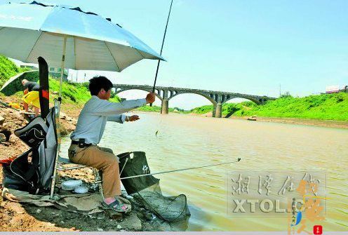 烈日当头,地面发烫,气象台预报最高气温达36℃,但仍然挡不住一些“钓友”的步伐。7月3日,在湘潭县河口镇涓水大桥下游处,记者遇到了几位执着的“钓友”,渔获还不错。
