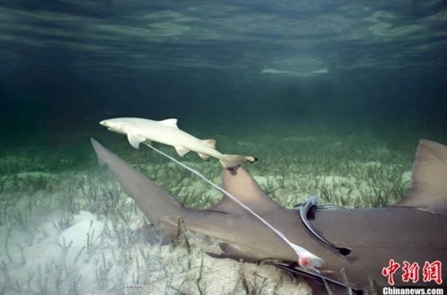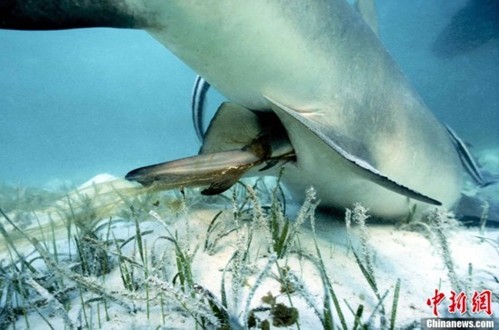 科学家发现长吸盘的鱼类 可吸附在鲨鱼身体