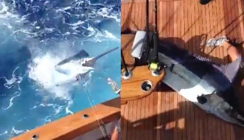 (原标题:鱼儿怒了!300斤蓝枪鱼蹦上游艇攻击游客)