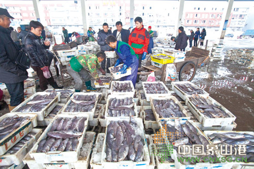 当下正值冬汛期,中国水产城内海鲜交易繁忙,野生鮸鱼大丰收,产销两旺。