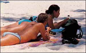 烈日炎炎,墨镜是保护眼睛不受强烈日光侵害的必需品。墨镜的颜色、样式五花八门。从样式上说,为了便于携带,应该选择重量轻、不怕摔的树脂或者其他合成材料的运动镜,最好是眼镜腿配有带子的那种;海边的日光强烈,所以应该选择颜色较深的茶色、绿色镜;UV镜可以防紫外线、偏振镜则可以过滤掉光线中的杂波,让眼前的景物更加清澈。