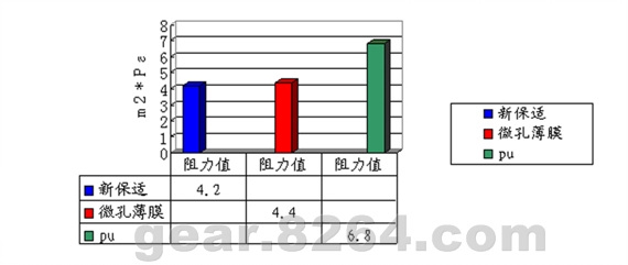 第四,绝对防风,最大限度减少热量损失。户外运动中,风冷效应能够迅速带走人体的热量,使人体在短短的几分钟之内被冻伤,所以,户外防风、保暖很重要。一般的微孔薄膜,只是使风力大大的减弱,而新保适无孔亲水薄膜则完全将风阻隔在衣服外面。根据EN ISO 9237,无孔实体薄膜结构可以最大限度减少热量损失,避免风冷效应。