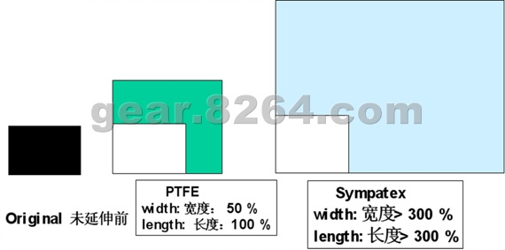 第三,300%的延展性。新保适(Sympatex)无孔亲水薄膜300%的延展性,相较于微孔薄膜100%的延展性,给了穿着者更大的活动自由。而且其强度是膜的7倍,可以向任何方向伸展,保证了衣服长时间穿着都不会变形。
