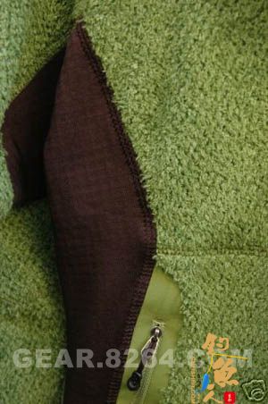 这类抓绒多数为单一材料采用编织或粘合的方法加工而成抓绒。目前材料多数为涤纶,我想主要是因为这种材料有快干的特性吧。早期采用过羊毛,随着科技技术的进步,逐渐被化纤材料代替,近期好像又有回朝的趋势。