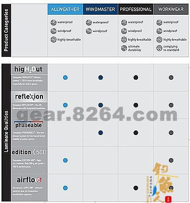 总体来看,新保适Sympatex(R) 户外产品可分为三大类:ALLWEATHER、WINDMASTER、PROFESSIONAL