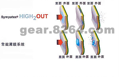 SYMPATEXHIGH2OUT与常规薄膜系统的对比(从里面到外面)