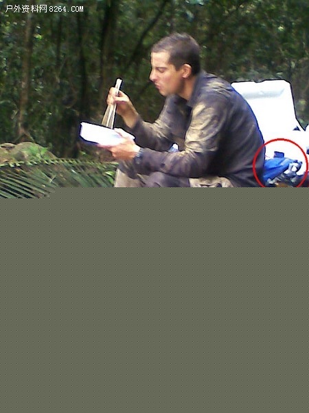 比如:贝尔都用什么牌子的装备:他在拍摄时都是用的以自己名字命名的装备,即Bear Grylls牌。有很多厂商专门为他生产装备,品牌就是他自己的名字。但他在平时就随便些,比如使用Granite Gear(花岗岩)的背包、穿Crocs的鞋、用EDELRID的防水包、戴SUUNTO手表等等。我本人对装备也很感兴趣,所以拍了一些照片给大家。