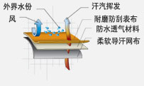 C:防水透气标准:防水10000MM/M2(采用日本JIS-L61092高水压测试,透气5000MM/24H/M2采用美国ASTM-E96BW标准)