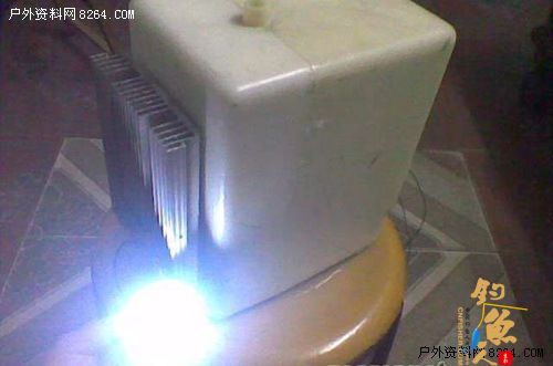 然后,邪恶的游戏开始了。沸水倒入冰胆中电压大改1。7伏,短路电流600毫安,后头火焰加热功率大点,但电表被别人借走,没测,用紫色发光二极管点亮,粗估有3。2伏吧。就算沸水的方案,通过只升压芯片给手机充电绰绰有余。点了只小电珠和带升压的LED灯头。