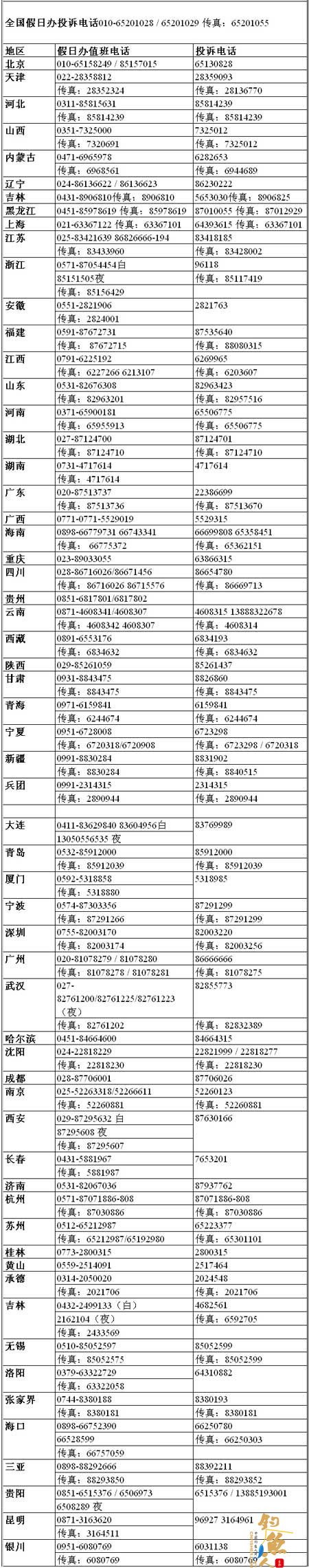(原标题:各省市假日办旅游投诉电话 )