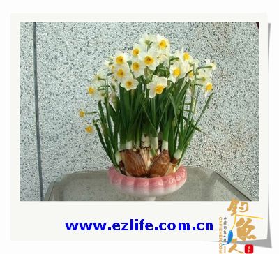 花:花等; 佛苞膜, 披形,管; 形花序有花4 - 8朵, 芳香, 直2.5- 3厘米, 花披管, 1.5 - 2厘米; 裂片白色, 倒卵形, 展而外翻; 副花冠色, 短, 杯; 花梗伸出佛苞外。花期:冬季。