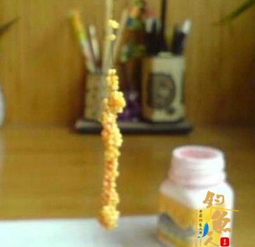 (2)粘粉:将粘水钩投入粘饵瓶中,摇动即可,粘粉后再将钩投入水中,此时饵呈粘稠状。