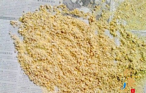 3、炒熟的玉米和大豆粉碎成小米大小的颗粒