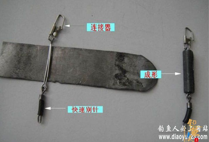 坠子的大小和形状任你发挥。快速别针渔具店有售。