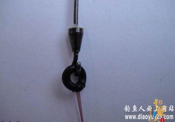 连接方法(二)。先把子线搭进挂钩,再把橡胶圈拉入挂钩内即可。钓鱼过程中,需要换鱼钩时,10秒完成 。不用担心子线鱼钩会不会脱落。脱落现象十多年从未发生过。