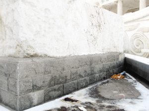 “半天也不见钓上一条鱼,咱也不为卖钱,就是有这瘾。”正在钓鱼的刘大爷说,冰面也就刚开始化冻,估计至少还能钓半个月。而钓鱼的这些人还自备了吃的、喝的,在冰面上一坐就是一上午,就连大小便都在岸边的天石舫码头解决。不到1个小时的时间,就有五六个人在刻有“天石舫碑记”的石碑后小便,这里俨然成了露天公厕。除了难闻的尿味,石碑后居然还残留着大便,实在大煞风景。其实,从码头步行不足50米,在李公祠大街上就有一座移动公厕。