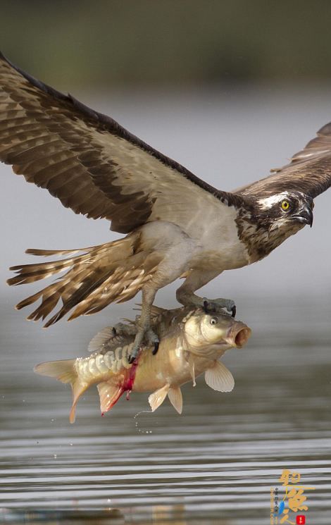 鱼鹰有着风格独特的狩猎方法,它们通常在水面上空60英尺(约18.3米)处盘旋,等待最佳时机发动进攻。锁定目标后,鱼鹰会向水面垂直俯冲,在落水前的最后几秒伸出利爪捕捉鲤鱼。