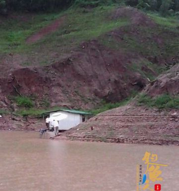 由于路程遥远,楚雄到坝栏河全程大概450公里左右,其中高速380公里,省道40多公里,县道30多公里,途经安宁、晋宁、玉溪、元江、墨江、雅邑乡、那哈乡、坝栏河。我们一行三人早上9点从楚雄出发,中午1:30左右在雅邑乡吃了中饭,下午3点半到达坝栏河小周家钓棚。一登上钓棚,我们便马不停蹄开始寻找钓位,最后我们把钓棚固定在江对面一个小回水湾里。按照三人的分工及目标鱼的不同,黄辣丁主攻罗非,用3.6米、4.5米手竿,选择在钓棚上作钓,水深2.5米;我主攻罗非及鲤鱼,同时使用4.5米和6.3米手竿,选择在小回水湾靠外的一个桦尖处作钓(下面图片中有个人背对着的地方就是我的钓位),水深4.5米;何断竿主攻大物,用6.3米手竿(主线3.0,子线2.0),选择在我的钓位左边5米的距离作钓,水深4.5米。