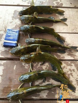 由于泗南江坝栏河白天基本没有大物出没,所以大家睡到10点多才起床,继续补窝,然后喝酒睡觉,下午无事,拉饵打浮,拉了两盘白条、马口下酒,那叫一个香。5点多,落水50公分,挖钓位,钓位向下移(现在知道为什么打窝时候我会在漂前面1米打窝了吧),继续按照第一天打窝的办法打窝。晚饭后,我们继续战斗,但基本无口,黄辣丁换上5.4米前打竿在钓棚钓深水(水深4.5米),居然连杆上了10多尾比筷子长的黄辣丁,这也是我见过最大的野生黄辣丁,果然“名副其实”,中间还上了2条公斤非。而我也钓了几条巴掌非(放生)、麻将非(放生)和一条筷子长的黄辣丁。何断竿同样也是钓了几条麻将非(放生)。