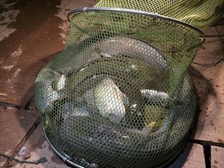 这次共钓获35公斤左右,其中罗非鱼都是在7公两以上。放生的小鲤鱼、小黄辣丁、小罗非等杂鱼不计其数。
