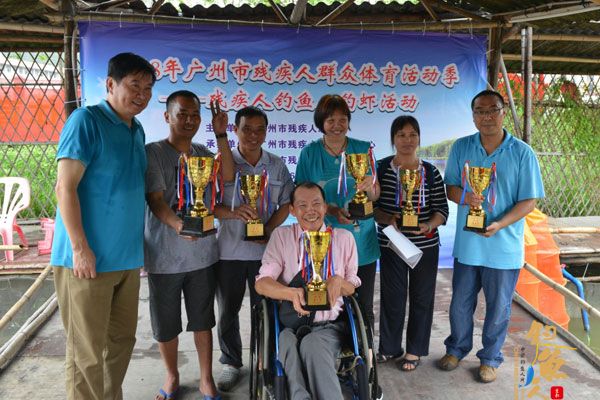 一大早虽然下着淅淅沥沥的雨,但热爱垂钓的残疾朋友们热情不减,一边沐浴着大自然的清新,一边在谈论如何垂钓。只见他们有条不紊地上鱼饵、抛钓线,钩到了一条条大鱼。钓虾场上,选手们不仅耐心细心,速度还相当地快,不一会儿,他们捧着钓上来的虾,脸上挂满了胜利的欢笑。看似平静的钓鱼钓虾场,却能感受到一种奋力争先,激昂快乐的气氛。经过一番比拼,白云区的两名选手胡伙房、杨桂池荣获钓鱼活动第一名、第二名的好成绩,第三名则由花都区的选手黄丽金取得。钓虾活动第一名、第二名和第三名则分别由越秀区的选手萝莉、白云区选手高秋生和番禺区选手何桂全夺得。今年活动还特别评选出团体总重量前六名的区,它们分别是白云区、花都区、番禺区、增城区、越秀区和天河区取得。