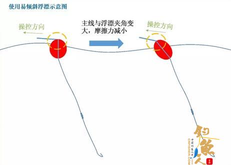 1.选择重心比较高、在水中易倾斜的浮漂;这类浮漂在受力后会向着施加力量的方向倾斜,从而扩大了主线与浮漂的夹角,降低了摩擦力;