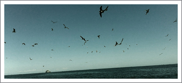 换上波扒找找感觉,没想到招来了海鸥,一个猛子扎下来叨起假饵就跑,这东西力量还挺大,扯着小轮子吱吱出线,感觉就象放风筝,这家伙发现了这是假的,不好吃,吐了出来,好在从上边叨住的,没有钩到嘴吧,没有伤到它,却让大伙着实的感受到这原生态的自然美。