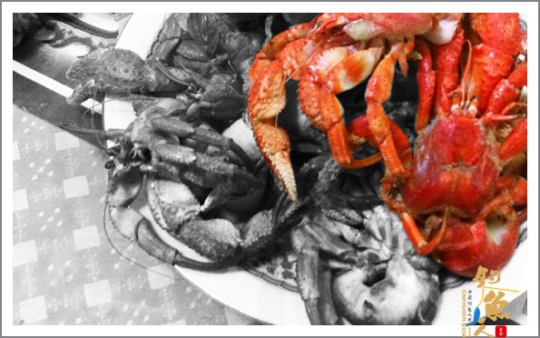 漂了一天,鱼毛没见,不过这伙食着实是让人耳目一新,满地乱窜的寄居蟹,栗子般大小的香螺,下锅前还张嘴骂人的大黑鱼,黄鱼、鲅鱼乱炖,老板又加了个时新菜,凉拌海蜇,下手吧,还等啥?