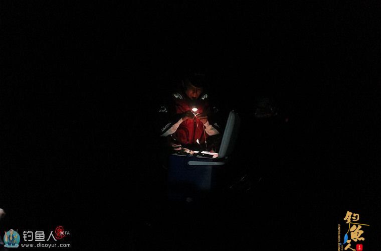 此时天空开始下起雨来,我也干脆不钓了,先看会再说。等了15分钟,雨开始不下了,看着他们鱼一条条地上着,我又按捺不住自己,又从阿力那边要了一个阿波和水中,继续绑好线组,再次下竿!