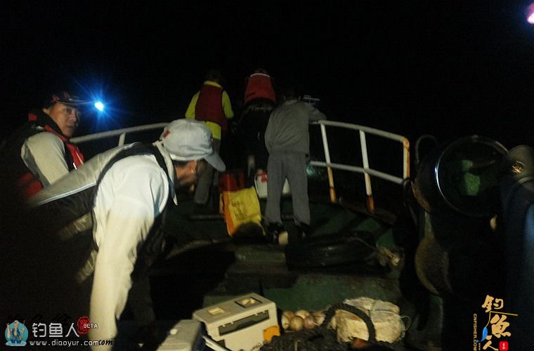 而我也将开始饱受晕船的折磨。可以毫不夸张的说,自从懂事开始,我还没有这么强烈的晕船反应。或许是头天晚上没有休息好,刚刚才上床坐在 床位上,船都还没开,我就感觉有些晕晕的感觉。于是慌忙吃了一片晕船药,但是这丝毫没有给我带来一些些好受。等大家都躺到床上闭目养神休息的时候,只有我 1个人在20分钟后就已经把持不住,一个人跑到船尾开始呕吐,晚上吃的东西也不多,最多也就是上船半小时前喝了一罐红牛加10来颗花生米而已。第一次吐 完,感觉稍稍地舒服了些,又回到床上不敢躺下去,只是端坐着,可没过多久,颠簸的船只又让我苦头吃尽,于是后来一次又一次的跑到船尾尽情地“享受”晕船带 来的痛苦。后来胃里已经没东西可吐了,只能吐胃液和清水,也干脆不回床位去,就站立在船尾,等晚上凉飕飕的海风把我吹的有些冷了才勉强再回去。终于大约在 2个半小时后,我有些睡着了,没睡到半小时,船上的灯亮了,船老大喊道起床了,马上到了。我一醒来,不是先整理装备,而是又去呕吐了一回。可以这么说,3 个半小时的乘船时间,我吐了2个半小时......