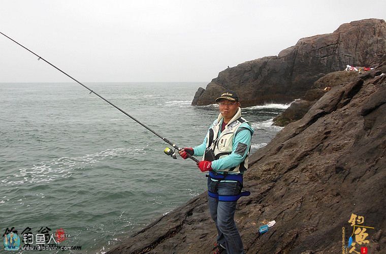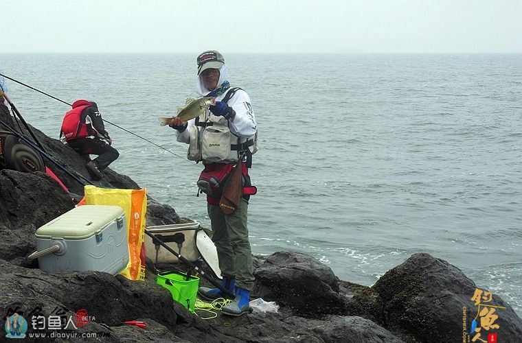 随着潮水的开始上涨以及风力的加大,海浪开始拍打起来,多么地刺激啊!我们同船的其他钓友被安排在那边,看他们站的 这么高,真替他们捏了一把汗啊。不过后来我才知道,更加勇敢的钓者还在后面呢!潮水冲刷着礁石的同时,也冲卷上不少的小海蜒。用此鱼来钓鲈鱼是上佳的选 择。这不,没过多久阿力就成功钓获一条海鲈。