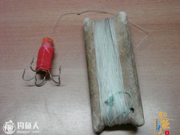 钓钩实际就是路亚类的一种,用红色电线管和钩子帮扎接上线就可以了,这就是菊花路亚,自己做比较简单。墨斗鱼对红的最为感兴趣,所以用红点线管。