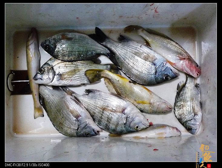 一下竿没到三分钟,就上了一只一斤半的真鲷。