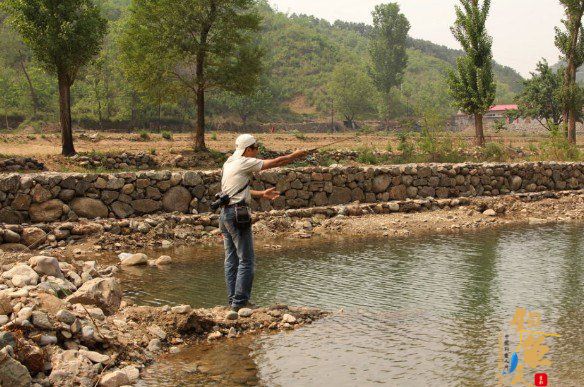 首先要有一个稳固安全的站立点,钓手目视标点方向。