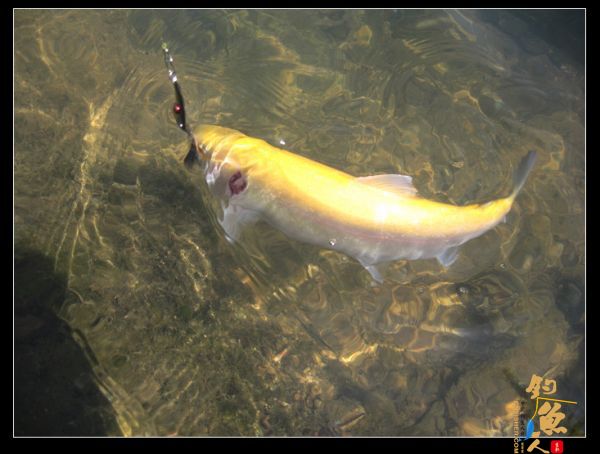 文章的最后提个醒:如果你事先已决定将鱼获放流的话,请勿使用控鱼器起鱼(你懂的),使用抄网能将对鱼的伤害降至最低;如果你打算与鱼拍照 留个影,请先将你的双手放进江水里泡一泡,目的是让手降温,否则,你的双手很有可能“烫”着鳟鱼,这绝非危言耸听;夏秋季气温很高,请别让鳟鱼滞留在空气 中时间过长,应尽快放回水中。如果你打算将唯一钓获的鳟鱼带回家……呵呵,上面的话算我白说。