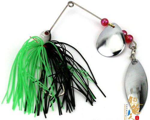 在水中拖曳会使亮片快速转动,一明一暗会让对象鱼误认为是小鱼群。鱼常有攻击游离小鱼的习性,因此,不会去咬闪烁的亮片而去咬下方明显的橡胶裙摆。又因 亮片的旋转会发出嗡嗡的声音,对大鱼有着极大的诱惑。专为钓大嘴黑鲈研发,用来黑鱼等鳢科类也不错。因钩尖朝上,而上方的钢丝组能排除障碍,减少挂底,所 以可用于水草区、枯木堆等钓点,还可在钓钩挂上蛆型软饵增加吸引力。