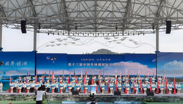 第十三屆中國升鐘湖國際釣魚大賽開幕式現場。陳萱攝